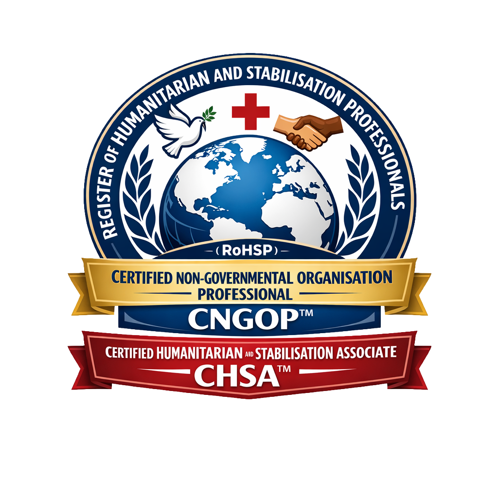 The Register of Humanitarian and Stabilisation Professionals (RoHSP) recognizes individuals dedicated to humanitarian assistance, stabilization, and international development. Through the Certified Non-Governmental Organisation Professional (CNGOP)™ and Certified Humanitarian and Stabilisation Associate (CHSA)™ credentials, RoHSP provides professional recognition for those working to support vulnerable communities, strengthen civil society, and promote stability in regions affected by crisis and conflict.